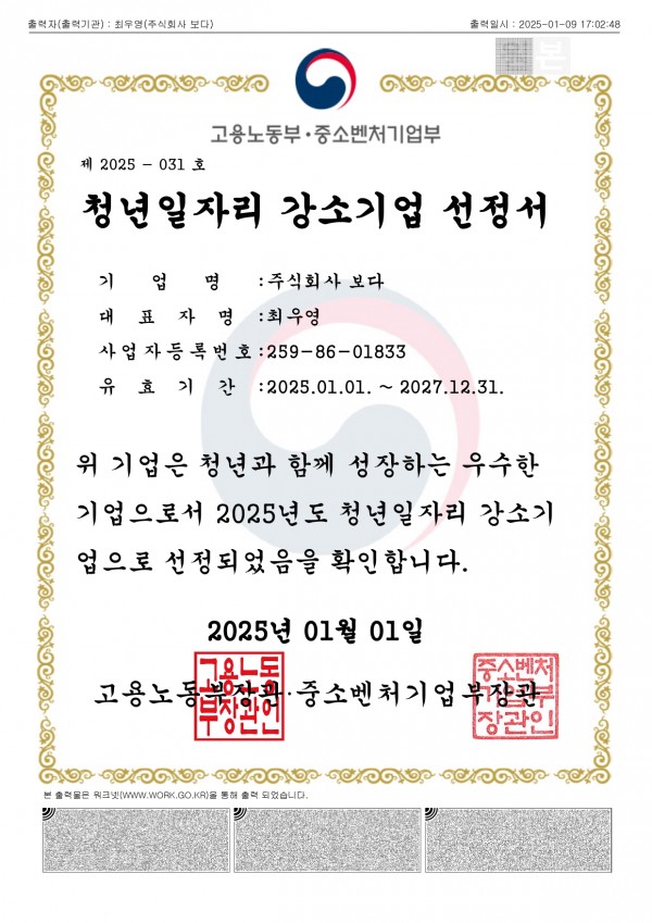 - 주보다_청년일자리 강소기업 선정서25.01.01~27.12.31.pdf (954.3K) 3회 다운로드 | DATE : 2025-09-01 17:29:33