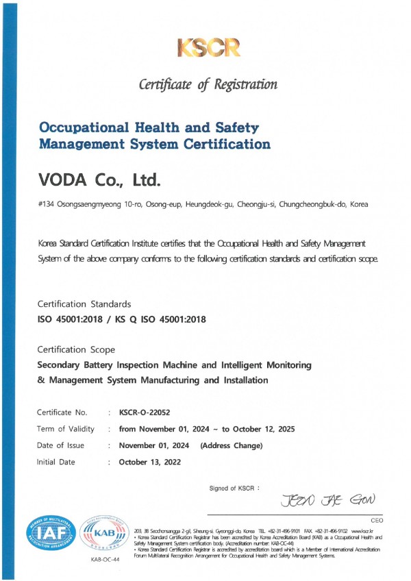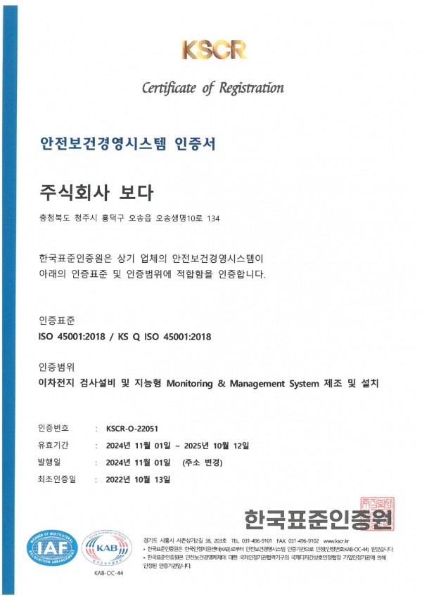 Certificate ISO45001 O-22052 페이지 정보 작성자 voda ViewView 85 DateDate 25-09-01 17:38 본문 ISO45001 O-22052(~25.10.12) File ISO45001 O-22052~25.10.12.pdf (559.3K) 1 Download | DATE : 2025-09-01 17:38:26 List PrevISO14001 E-22032 25.09.01 NextCertificate of Small but Strong Enterprise 25.09.01