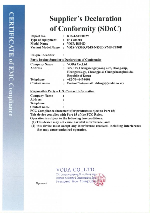 Certificate VMR-R830D_FCC-SDoC 페이지 정보 작성자 voda ViewView 127 DateDate 25-09-01 17:44 본문 File VMR-R830D_FCC SDoC.pdf (72.7K) 2 Download | DATE : 2025-09-01 17:44:46 검색 List PrevVMR-C530N-CE-Certificate 25.09.01 NextVMR-C530N-FCC-Certificate 25.09.01